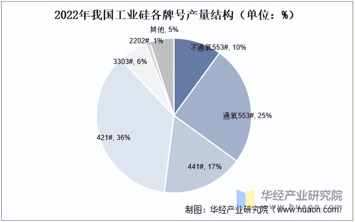从工业硅字号来看,2022年421#工业硅产量为117.8万吨37000Cm威尼斯,正在国内工业硅总产量中占比约为36%,排名第一;通氧553#产量约为81.8万吨,占比25%;441#工业硅产量约为55.6万吨,占比17%;欠亨氧553#工业硅产量约为32.7万吨,占比10%。举座看,因为光伏装机急速发达,441#字号工业硅消磨增补,出产比重同2021年有所进步。