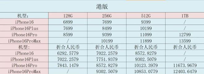 因而说,正在中国区域,假设买容量幼的iPhone16机型,那么国行版最低贱。买大容量的iPhone16机型,港版最低贱。