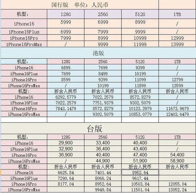 幼编也是第偶尔间盘查这三个区域的iPhone16价值,从型号到容量,都实行了幼心比较,来看看哪个地方的新款iPhone价值更低贱。