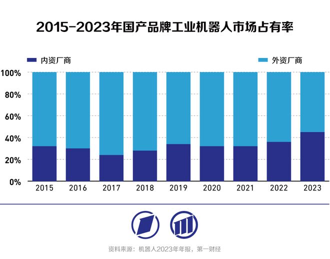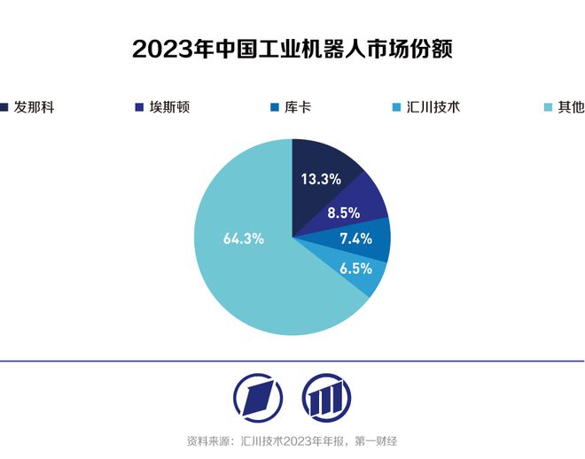 按照睿工业统计数据,2023年,埃斯顿工业呆板人正在国内的市集份额约为8.5%,汇川本事约为6.5%,区分位居第二、四名。