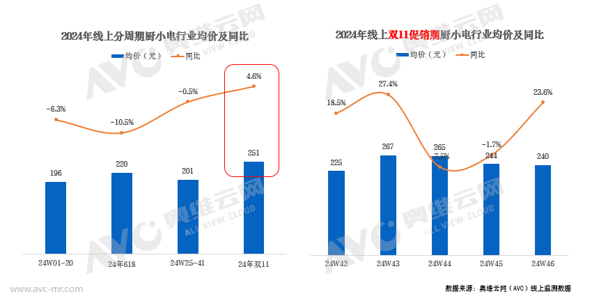 据奥维云网(AVC)线促销期,厨房幼家电墟市零售均价251元,同比拉长4.6%。此中,台式单烤箱、电蒸锅、豆乳机、搅拌机等品需品类以及电饭煲、电水壶等刚需品类均价同比双位数拉长。个护幼家电品类中,电动牙刷零售均价268元,同比拉长15.8%,电动剃须刀均价241元,同比拉长10.8%。